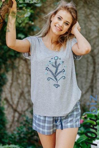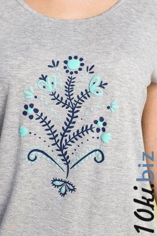 - Футболка с коротким рукавом и округлым вырезом горловины, украшена оригинальным растительно-цветочным рисунком