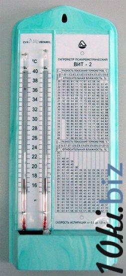Гигрометр ВИТ 2 предназначен для определения климатических параметров на складе, в медицинском учреждении, аптеке, теплице, животноводческом и растениеводческом хозяйстве. Скорость аспирации (движения вертикальных воздушных потоков) и температуры определяется по специальной таблице.В конструкции психрометра ВИТ-2 содержится температурная шкала, два капилляра с рабочей жидкостью, фитиль, металлической пластины значений влажности воздуха. Корпус прибора изготавливается из пластика.Цена делений шкалы (градусов