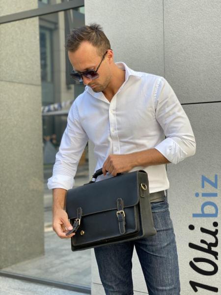Черная деловая сумка в классическом стиле из натуральной телячьей кожи. Деловой портфель для ноутбука и бумаг А4 предназначен для ношения в руке и на плече.