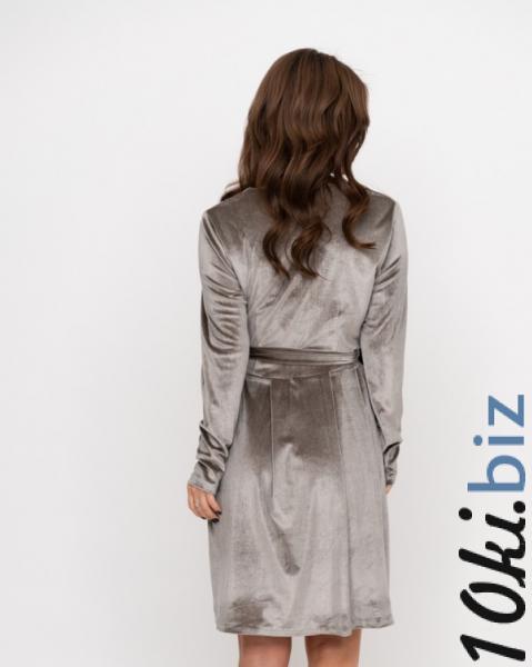 Велюровое мягкое серое платье с V-образным декольте кроя на запах. Модель приталенного кроя с присборенной юбкой и длинными рукавами. Модель обладает длиной до колен и оснащена карманами и съемным поясом.