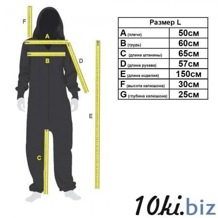 длина комбинезона 150 см, длина капюшона 35 см, длина рукава 60 см, ширина плеч 50 см, ширина груди 60 см |