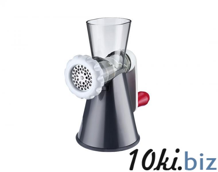 Мясорубка с пластиковым корпусом и режущим механизмом из нержавеющей стали.