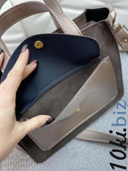 Одно отделение на молнии, внутри 2 кармана из кожзама - один открытый, а второй на молнии.