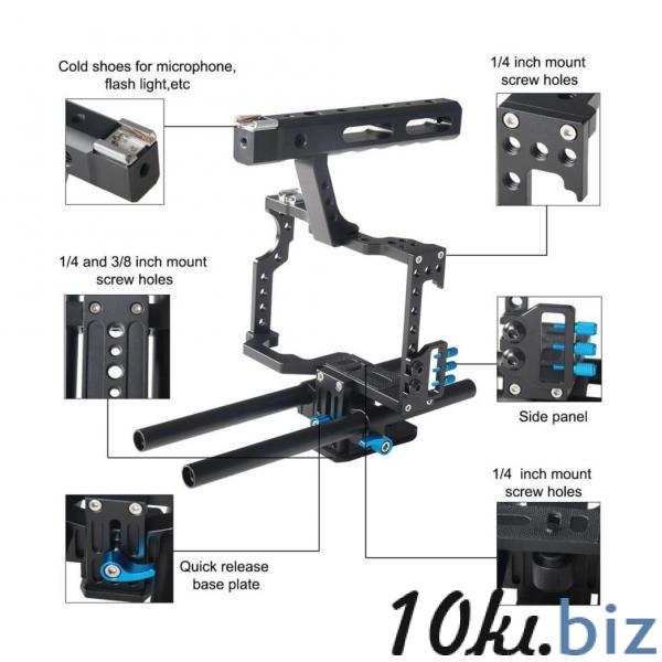 Клетка YELANGU C5 предназначена для беззеркальных камер — представляет собой портативный каркас из прочного алюминиевого сплава с анодным окислением поверхности. Твердый, прочный и устойчивый к коррозии металл. Форма клетки разработана специально для использования с беззеркальными камерами. Помимо установки самой камеры внутри, позволяет монтировать ряд аксессуаров, таких как внешний монитор, накамерный свет, микрофон или рекордер. Мощная стальная конструкция надежно защищает вашу камеру от ударов и других механических воздействий. Быстросъёмная площадка внутри клетки позволяет быстрым движением вытащить камеру из клетки и снова установить её. В комплект клетки входит металлическая ручка (при не обходимости ее можно снять), а также рельсы.