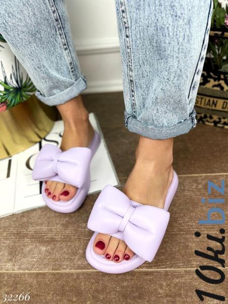 Шлепанцы с бантом; Ширина лямки 6,5 см; Размерная сетка: 36-23; 37-23,5; 38-24; 39-25; 40-25,5; 41-26 см