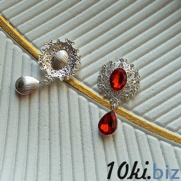 Металева серединка 25 * 45 мм. Основа біле срібло з камінцями червоного кольору, підвіскою, та білими кришталевими стразами.