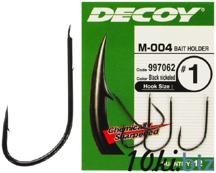 Крючок Decoy M-004 имеет на цевье специальную бородку для лучшего удержания приманки и предназначен для ловли на червя. Особая форма изгиба позволяет добиться большей прочности на разгибание. Лопатка для привязывания узла делает крючок менее заметным и лёгким. Серия Decoy M-004 применяется в основном в фидерной рыбалке, реже в поплавочной и карповой ловле.