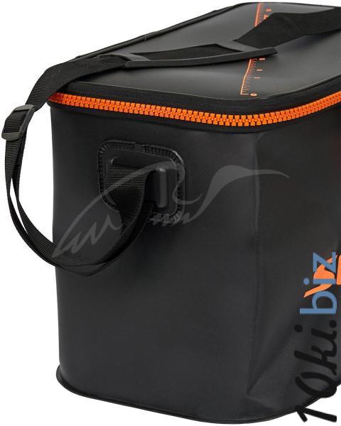 Сумка Select Folding Bakkan может применяться в любом виде рыбалки для хранения и переноски снастей, аксессуаров или даже наживки и прикормки. Благодаря тому, что она выполнена из материала EVA с паяными швами, то обладает высокой прочностью и надёжностью, не промокает и, при необходимости, легко моется. К тому же, такая конструкция позволяет защитить содержимое от намокания во время дождя, от брызг или если поставить её на мокрый грунт. Баккан имеет одно просторное отделение, в котором рыболов на своё усмотрение может разложить свои снасти, например, в коробках, кошельках или небольших сумках. Верхняя крышка закрывается с помощью мощной молнии увеличенного размера. На ней находится мерная шкала, которая поможет определить длину поводка или пойманной рыбы. Для переноски баккана предусмотрен плечевой ремень с возможностью регулировки длины. Если сумка не используется, то эластичность материала позволяет компактно сложить её и она не будет занимать много места. Select Folding Bakkan универсальное и практичное решение для переноски снастей, независимо от того, какой вид рыбалки предпочитает пользователь.