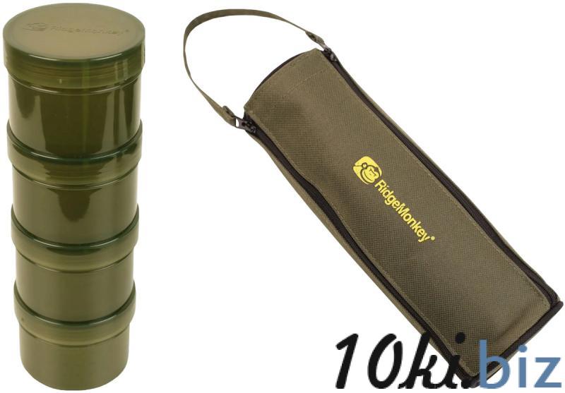 Емкость RidgeMonkey Modular Hookbait Pots – набор баночек для дипования насадок. Каждая из 4-х модульных емкостей состоит из внешней цилиндрической баночки с герметичной крышкой и внутренней перфорированной съемной пластиковой вставки. Перед рыбалкой насадки помещаются в собранные емкости, которые заполняются дипом и герметично закрываются крышкой. В таком положении насадки пропитываются жидкостью, которая не проливается при транспортировке. На рыбалке для удобства извлечения насадки внутренняя вставка вынимается с помощью специальной ручки, а лишняя жидкость стекает через отверстия обратно во внешнюю емкость. Таким образом, рыболов не пачкает руки и экономит дорогостоящие дипы, аттрактанты и прочие вещества. Набор RidgeMonkey Modular Hookbait Pots поставляется в удобном чехле из прочного полиэстера, застегивающимся на молнию.