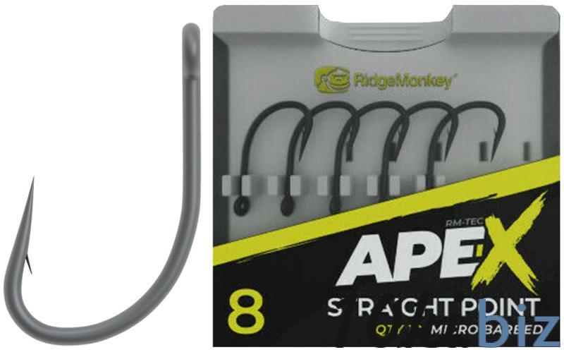 Крючок карповый RidgeMonkey Ape-X представлен широкой линейкой специализированных моделей для карповой рыбалки. Эти одинарные крючки производятся из высококлассной японской стали 80 с повышенным содержанием углерода. Загиб и ушко крючка обрабатываются методом ковки для получения особых структуры материала и профиля проволоки, что способствует упругости и прочности. Изделия проходят несколько стадий закалки и отпуска, которые придают материалу исключительные механические свойства. Уникальное металлическое покрытие RM-Tec Gun Metal защищает крючок от коррозии и маскирует его. Особой гордостью серии Ape-X является невероятно острая заточка жала с микро бородкой, которая минимально препятствует проникновению острия в губу рыбы, а затем увеличивает надежность удержания трофея. Все модели линейки имеют изысканную упаковку в пластиковой коробочке с прозрачной крышкой, где каждый крючок закрепляется миниатюрным фиксатором.