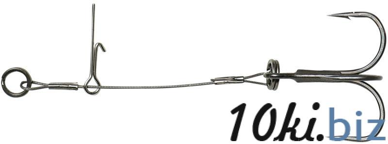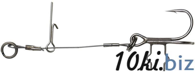 Оснастка Savage Gear Carbon49 T-Treble Spike Stingers включает в себя специфический тройник, у которого два крючка расположены под углом 180 градусов, а третий – под углом 90 градусов к двум первым. К цевью крючка перпендикулярно припаяны 2 шипа для крепления к хвостовой части силиконовой приманки, на самом поводке скользящим образом смонтирована шпилька для крепления оснастки к носовой части приманки.