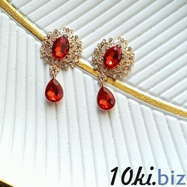 Металева серединка 24 * 45мм. Золота основа з червоним камінчиком та підвіскоюкришталевими стразами.