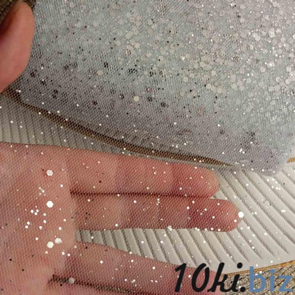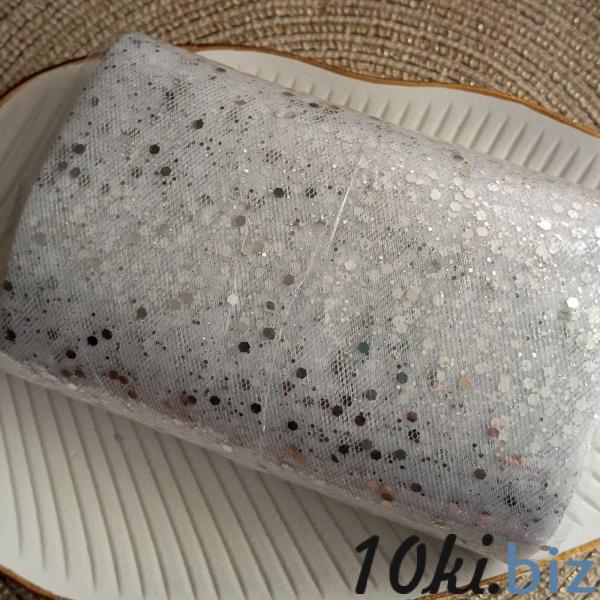 Фатин білий із срібними глітерними блискітками великими та маленькими шириною 15 см . Декор для шитья и рукоделия в Украине