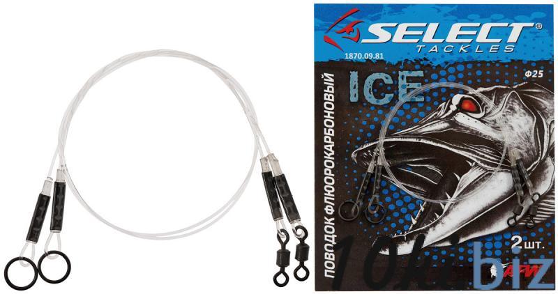 Поводок Select для жерлицы применяется при ловле щуки для защиты основной лески от её острых зубов. С одной стороны он оснащён вертлюгом, предотвращающим перекручивание оснастки, а с другой - заводным кольцом, необходимым для удобного крепления крючка. Поводки для жерлицы Select выпускаются в двух вариантах: из 7-ми стальных волокон от фирмы AFW (США) и флюорокарбона Sunline (Япония). Первый вариант имеет 100% защиту от порезов, обладает высокой эластичностью и малым диаметром, но может влиять на количество поклёвок при ловле осторожной рыбы. Поводок из флюорокарбона не заметен в прозрачной воде, позволяя добиться большего количества поклёвок, но при определённых ситуациях не даёт полной защиты от перекусывания снасти щучьими зубами.