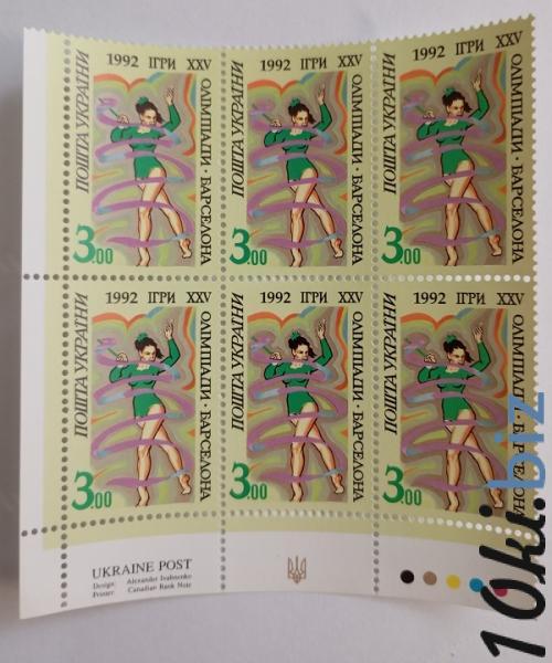 1992 № 23 угловой квартблок почтовые марки Игры XXV Олимпиады в Барселоне. Гимнастка с лентою. (3.00) Филателия в Украине