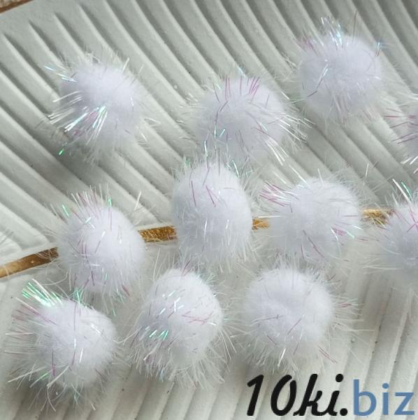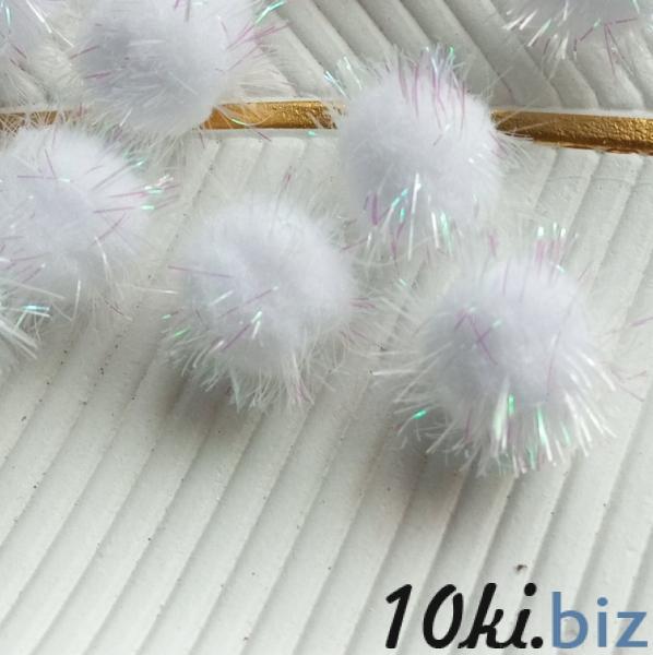 Помпони білі з блиском 2.5 см пакунок 10 штук для декору .бантики прикраси Новогодний декор в Украине