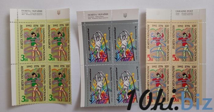 1992 № 23-25 квартблоки почтовых марок Игры XXV Олимпиады в Барселоне. Гимнастка с лентою. (3.00) Игры XXV Олимпиада в Барселоне. Прыгун с шестом. (4.00) Игры XXV Олимпиады в Барселоне. Гимнастка с лентою. (5.00) Филателия в Украине