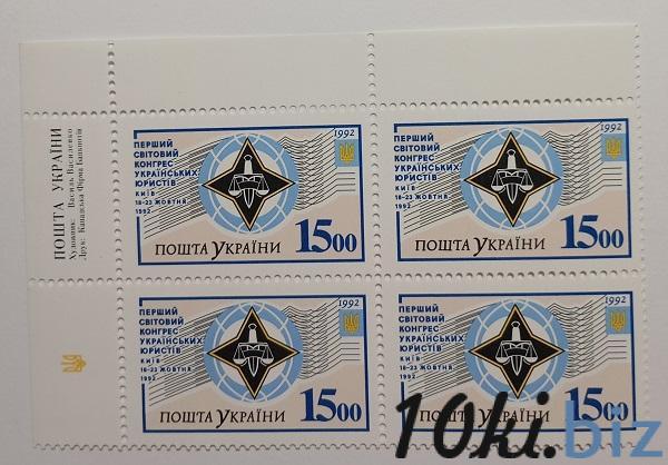 1992 № 30 угловой квартблок почтовых марок Первый мировой конгресс украинских юристов Дата выпуску 18.10.1992 Филателия в Украине