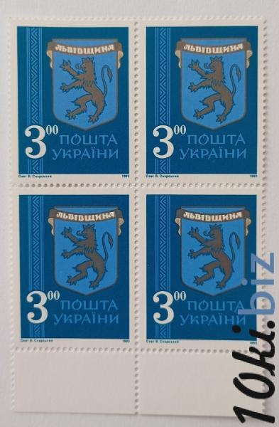 1993 № 35 квартблок почтовых марок Герб Львовщины номинал 3-00 Филателия в Украине