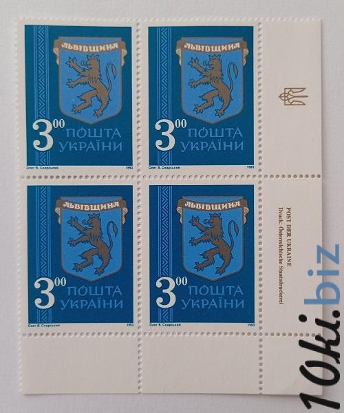1993 № 35 угловой квартблок почтовых марок Герб Львовщины номинал 3-00