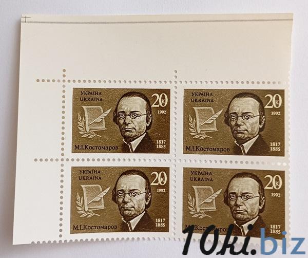 1992 № 14 угловой квартблок почтовых марок 175 лет от дня рождения известного украинского историка, публициста и писателя Николая Ивановича Костомарова (1817-1885) Филателия в Украине