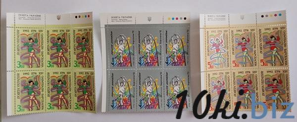 1992 № 23-25 угловые почтовые марки Игры XXV Олимпиады в Барселоне. Гимнастка с лентою. (3.00) Игры XXV Олимпиада в Барселоне. Прыгун с шестом. (4.00) Игры XXV Олимпиады в Барселоне. Гимнастка с лентою. (5.00) Филателия в Украине