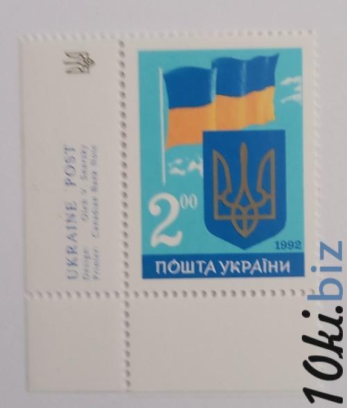 1992 № 26 угловая почтовая марка Первая годовщина независимости Украины. Государственный Герб и Государственный Флаг Украины Филателия в Украине