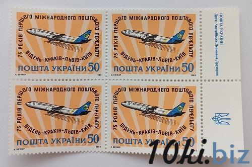 1993 № 39 квартблок почтовых марок Самолет 75 лет первого международного почтового перелета Виден-Краков-Львов Филателия в Украине